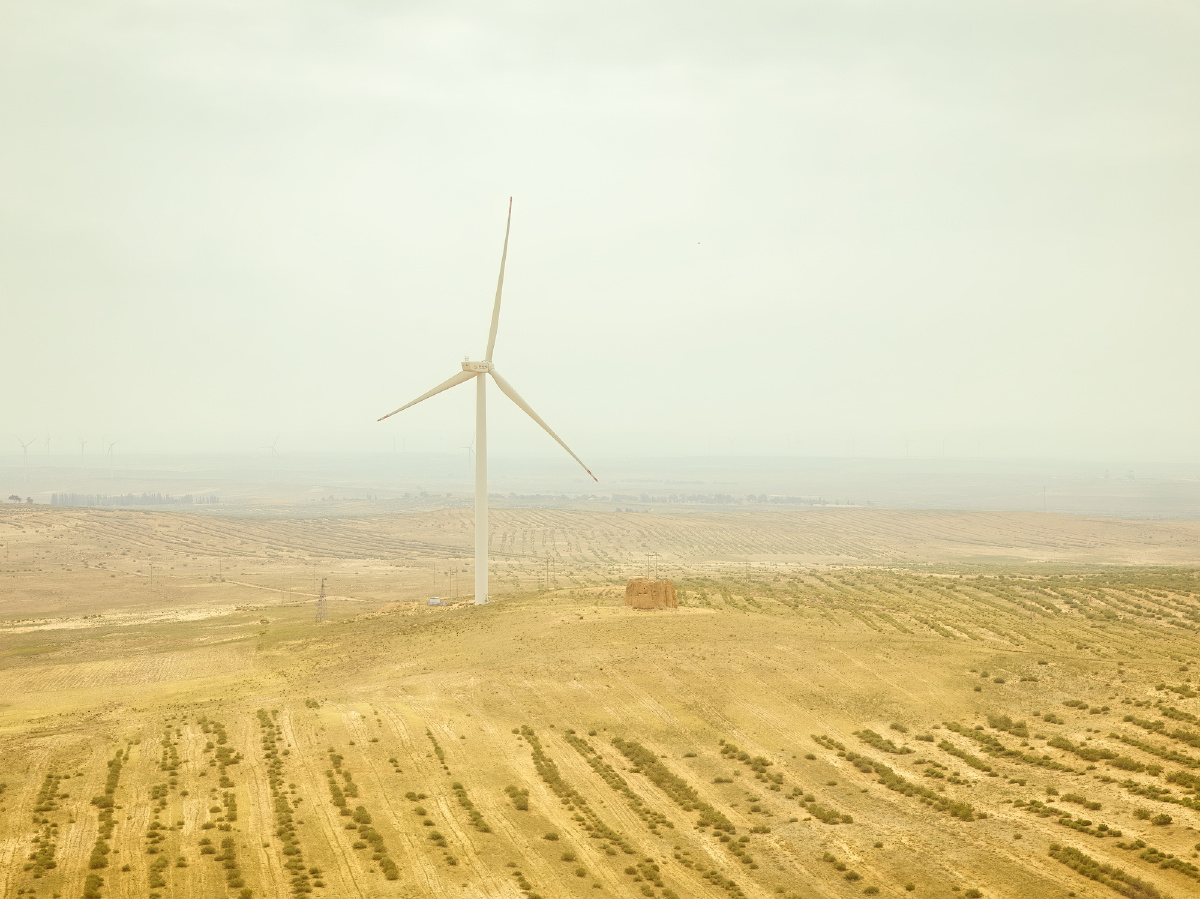 吴忠市位于宁夏回族自治区中部,这片土地见证了中原王朝与北方游牧民族的交融碰撞,随处可见明代的烽燧遗址。而现在这里已经变成了一座新能源之城。截至2025年,吴忠的新能源装机容量已经接近2000万千瓦,约等于一座三峡水电站,占到了宁夏新能源发电的半壁江山。 这张照片拍摄于吴忠市盐池县,使用大疆M350无人机搭载飞思iXM120中画幅相机,记录下了烽火台与风车古今同框的画面。后期整体色调调成了黄色,呼应这里黄土高原丘陵地带的氛围。