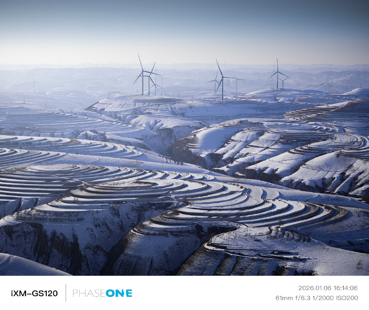 华能陇东多能(风光火储)互补综合能源基地是我国首个千万千瓦级多能互补综合能源基地,风电、光伏、调峰火电搭配储能放电,打包通过800千伏直流特高压输送至山东。 这次和摄影之友以及远景能源的小伙伴一起,探索了环县附近的风车场,这里的黄土丘陵沟壑纵横,历代生活在这里的人们将山塬切割成一块块平台,用于耕种和放牧。 而现在叶片直径200米的一台台巨型风车也在这里拔地而起,构成了2020年代的黄土高坡新风景。 我们还幸运的遇到了雪后的壮观场景,大家能看出来图2的窑洞和图3的风车,分别是从1.2亿像素的图1中的哪里截图出来的吗? 拍摄:大疆M350挂载飞思ixm-gs120中画幅 参数:iso200 1/2000s f6.3