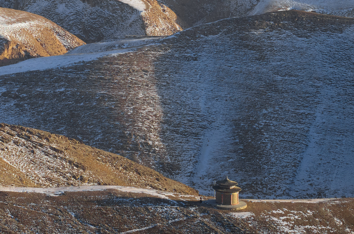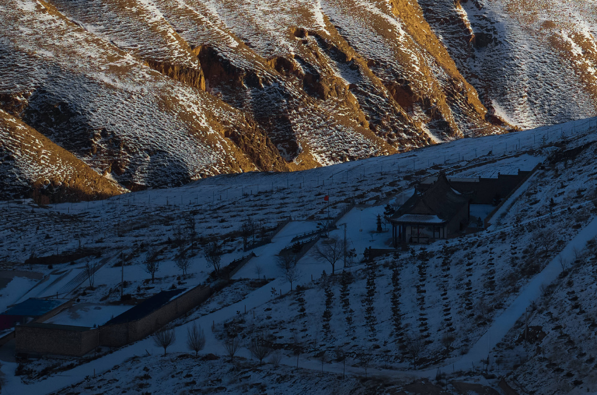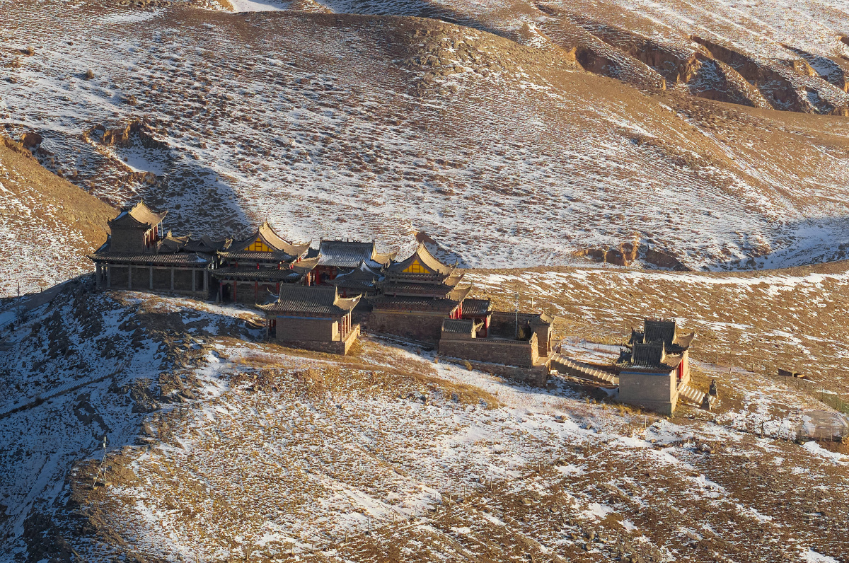 无人机拍到的神秘道观[天啊] 甘肃市庆阳环县与宁夏吴忠下马关交界处的山上,我们在附近村庄拍摄时,远远的用无人机长焦发现了一座修的很壮观的道观。 于是我们开车靠近了这里,因为冬天大雪封山,上到山顶的道路无法通行,我们只能用无人机远远拍摄了道观与背后的风车群。不过在地图上也没找到名字和资料,不知道大家有知道这里来历的吗? 我的摄影展【绿色未来——中国新能源转型影像调查】将于2026年1月21日至27日在北京 798 艺术区映画廊开启复展,我自己21号下午到25号下午之间会在现场,欢迎大家来观展。 拍摄:大疆M350无人机+飞思GS120中画幅相机 参数:iso200 f5.6 1/1250s